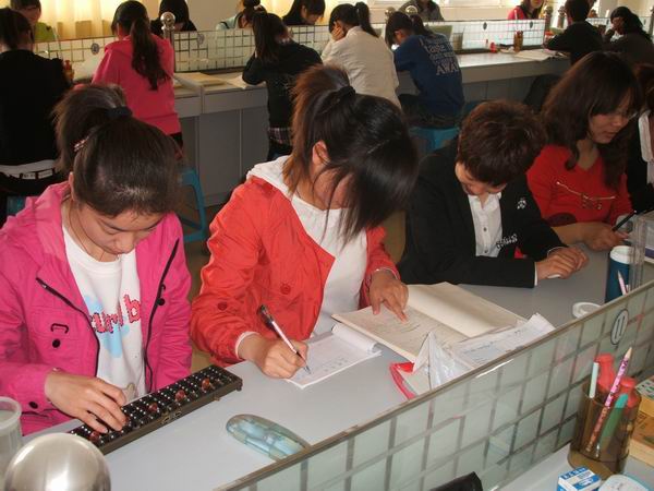 會計手工模擬實訓(xùn)室是我系重要的專業(yè)實驗室之一,該實驗室主要面向會計電算化、市場營銷、物流管理等專業(yè)學(xué)生。承擔(dān) 會計學(xué)基礎(chǔ) ,《財務(wù)會計》,《財務(wù)管理》課程的綜合性實驗。通過本實驗教學(xué),培養(yǎng)學(xué)生掌握企業(yè)財會基本知識和技能,使學(xué)生理解會計工作的基本流程,掌握憑證、賬簿、報表三者之間的相互關(guān)系,培養(yǎng)學(xué)生會計單證的書寫、原始憑證和記賬憑證填制與審核、賬簿登記與平衡、對賬與結(jié)賬,會計報表的編制以及銀行結(jié)算等財會業(yè)務(wù)的實際操作及模擬企業(yè)財務(wù)會計問題的實際處理能力與技巧。