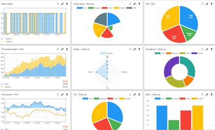 4)提供豐富的可視化控件庫,通過拖拽、簡便配置即可完成美觀的UI設(shè)計(jì)。支持GIS地圖、曲線圖、柱狀、餅圖、圖表、按鈕、儀表圖等控件。