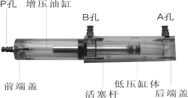 2、增壓油缸的前端蓋、后端蓋、低壓缸體、增壓缸體等均采用了進(jìn)口透明有機(jī)玻璃材料精制而成,透明清晰,活塞桿采用了合金鋁材料,并配合油接頭,密封圈,內(nèi)六角螺絲等標(biāo)準(zhǔn)件裝配而成,通過它可明確地觀察到活塞桿,油封,油孔等結(jié)構(gòu)及其運(yùn)行過程,具有形象逼真,性能可靠等優(yōu)點(diǎn),它既可作為教學(xué)模型,也可以液壓實(shí)驗(yàn)元件進(jìn)行實(shí)驗(yàn)演示。