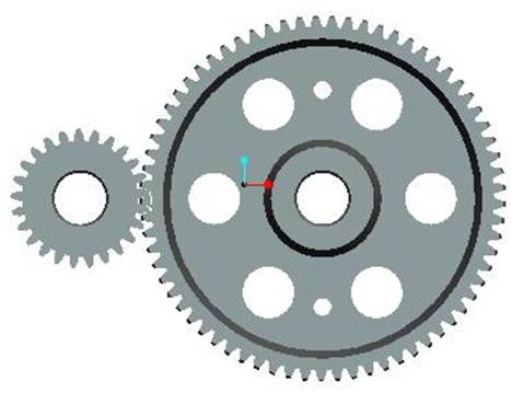 1、  計(jì)算齒輪傳動(dòng)比:其中主動(dòng)齒輪分度圓直徑為50MM,從動(dòng)齒輪分度圓直徑為84MM,如圖3-2所示: