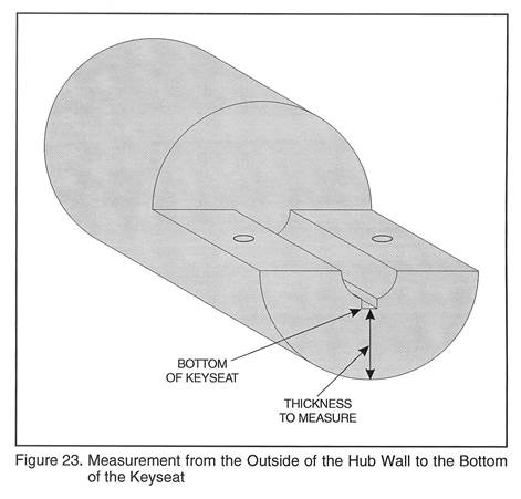 C.  用游標(biāo)卡尺測量從輪轂的外壁到鍵槽底部的厚度,如圖23所示
