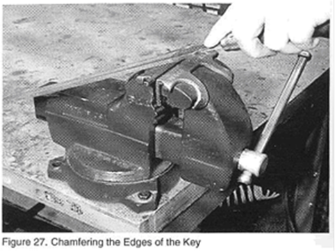 C. 使用平銼在鍵坯一端的兩邊倒角,如圖27所示(若另一端也需要倒角,則需要將