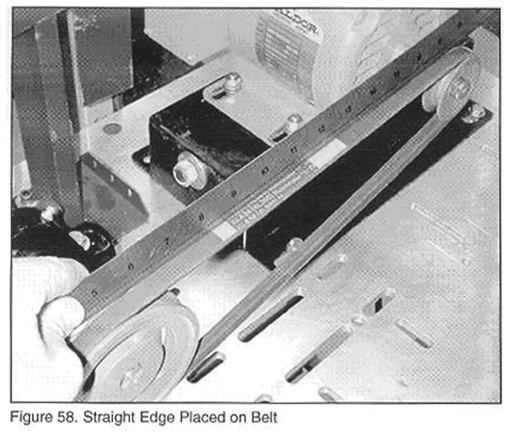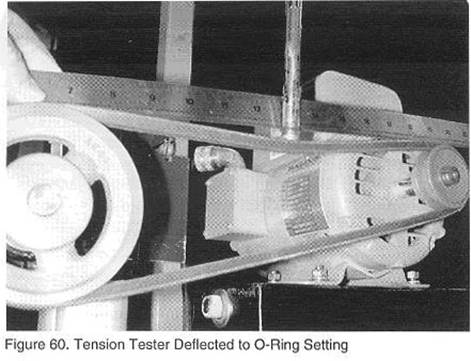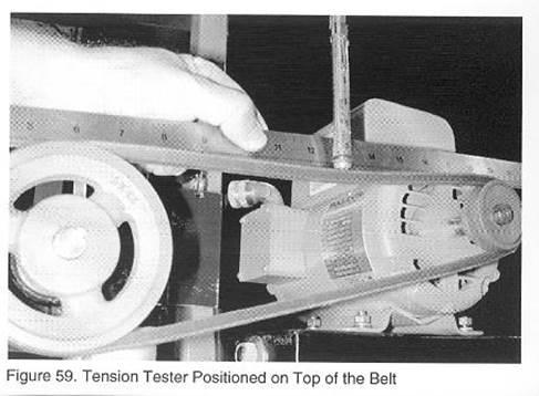 E.    再將張力測試儀放置在帶的跨距中心,并且使之與帶垂直,如圖59所示;