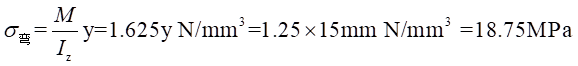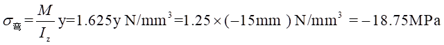 距離中心軸線-15mm處的處的彎曲應(yīng)力為: