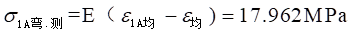 當(dāng)載荷加載在試件的對(duì)稱軸上,試件的橫截面上只受到軸力,因此又有拉伸正應(yīng)力。同樣,當(dāng)載荷加載到了試件的A-A截面上時(shí),此時(shí)由拉力引起的正應(yīng)力和軸對(duì)稱加載時(shí)產(chǎn)生的拉應(yīng)力是一樣的,應(yīng)力為: