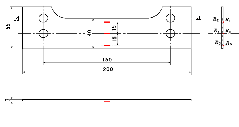 2.測(cè)定如圖5-2所示試件,沿A-A加載時(shí),即偏心拉伸截面中性軸位置。