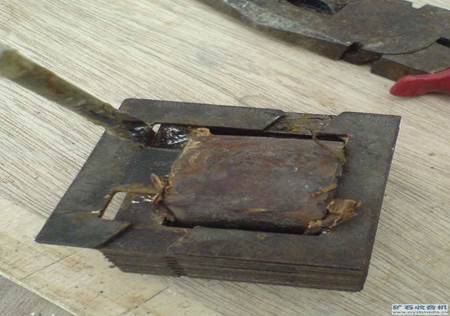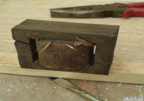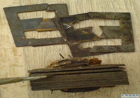 6、把對側(cè)的那兩片也敲出來,這下鐵心就沒有那么緊了,重復(fù)上面的步驟,再敲出一兩片來,就不會很困難了。如圖1-7。
