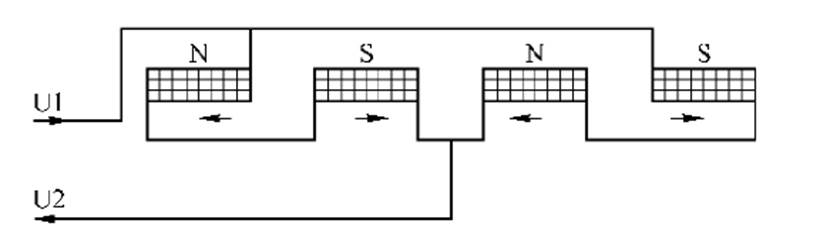 繞組可以是線繞的、也可以是銅圈。沿順時針方向旋轉(zhuǎn)時,則給相應(yīng)的主繞組U1通電,繞組U2斷電;沿逆時針方向旋轉(zhuǎn)時,則讓主繞組U2通電,繞組U1斷電。