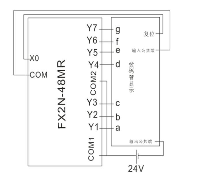 X0:停止按鈕(注:面板上的復(fù)位鍵)  Y1~Y7:a~g