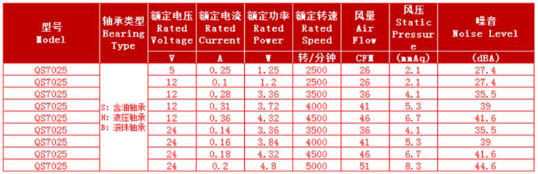 表3-9  7025風(fēng)扇參數(shù)表