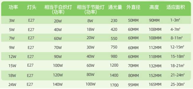 表3-1 LED電燈選型參數(shù)表
