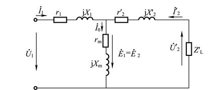 1.相關知識 1)負載運行時的物理情況 2)負載運行時的電磁關系 (1)磁動勢平衡方程式 空載時的主磁通 這一關系式稱為磁動勢平衡方程式。 式(3-18)兩邊同除以N1并移相,得: 由式(3-19)可知,當負載電流增大時, (2)電壓平衡方程式 3)負載運行時的等效電路 (1)繞組的折 (2)“T”形等效電路 經過折算繞組,可得變壓器的部分等效電路,如圖3-16(a)所示。其中一、二次側之間的耦合作用,由主磁通在繞組中產生的感應電動勢 ![]() (a)部分等效電路 ![]() (b)“T”形等效電路 圖3-16 變壓器的“T”形等效電路的形成過程 (3)近似和簡化等效電路 |