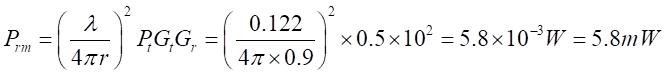 為接收功率,為發(fā)射和接收天線的增益,發(fā)射功率,R為收發(fā)距離。