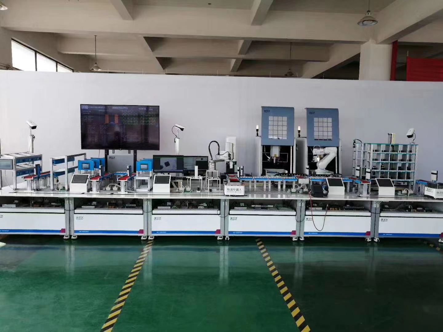 主要由總控臺、編程電腦、可視化及顯示終端、監(jiān)控系統(tǒng)等組成,用于整個智能產(chǎn)線的控制和功能、實訓(xùn)場景展示。