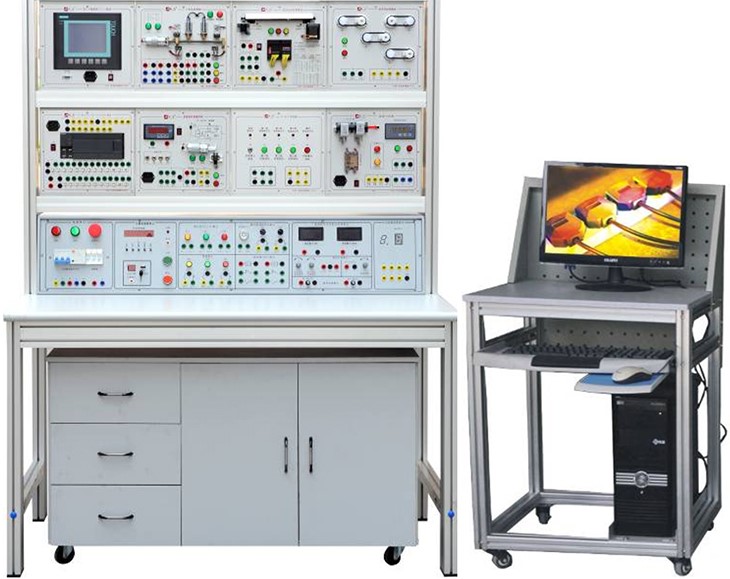 智能PLC電氣控制綜合實(shí)訓(xùn)平臺(tái)、服務(wù)于機(jī)電一體化技術(shù)、數(shù)控技術(shù)、工業(yè)機(jī)器人技術(shù)等專業(yè)。是培養(yǎng)機(jī)電類專業(yè)學(xué)生學(xué)習(xí)PLC應(yīng)用技術(shù)的主要實(shí)訓(xùn)場所,并為教師提供科研開發(fā)平臺(tái)。實(shí)訓(xùn)設(shè)備可以完成PLC軟硬件基本操作;機(jī)械手控制系統(tǒng)設(shè)計(jì)、調(diào)試;運(yùn)動(dòng)控制裝置設(shè)計(jì),調(diào)試;分撿系統(tǒng)控例設(shè)計(jì)、調(diào)試;立體倉庫裝置系統(tǒng)、調(diào)試等實(shí)訓(xùn)項(xiàng)目。