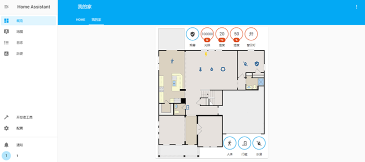 AIoT平臺向用戶推薦提供Home Assistant開源系統(tǒng)進行智能家居案例實現(xiàn)。Home Assistant作為一個基于Python3的自動化智能家居平臺,支持眾多品牌的智能家居設備部署,方便手動或按照自己的需求自動化聯(lián)動各種外部設備,可通過Node-RED管理設備的自動化規(guī)則,直觀展現(xiàn)傳感器設備在不同環(huán)境下實現(xiàn)的功能。用戶還可自主繪制并導入智能家居場景平面圖,設置相關傳感器設備的位置,提高用戶體驗感。