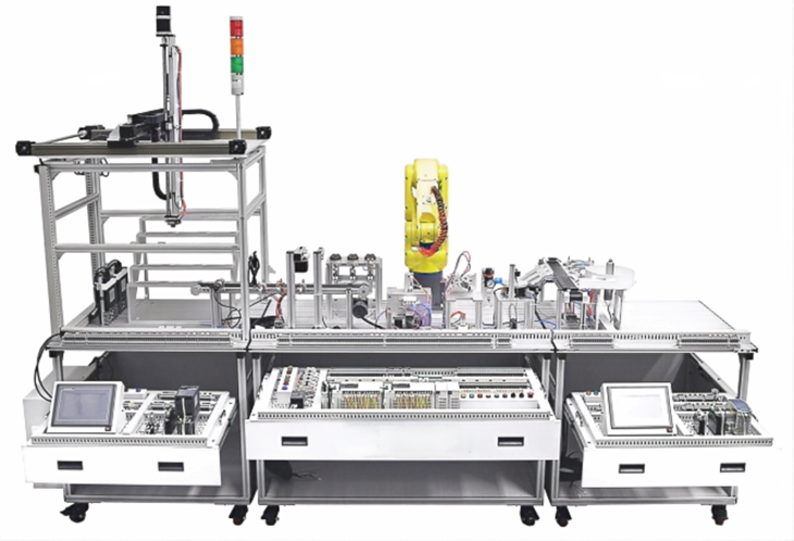 機電一體化智能實訓設(shè)備要求以4個鋁合金導軌式工作平臺作為基礎(chǔ)平臺,整體結(jié)構(gòu)應采用開放式和拆裝式,能夠根據(jù)不同形式生產(chǎn)功能要求將多個實訓臺組合成不同長寬的基礎(chǔ)工作面,然后在基礎(chǔ)平臺上根據(jù)現(xiàn)有的機械部件,以模塊化的方式組裝和搭建具有生產(chǎn)功能的機電一體化智能生產(chǎn)線設(shè)備,還應能添加其它機械部件組裝其他生產(chǎn)設(shè)備,使整個裝置能夠靈活的按教學或競賽要求組裝具有生產(chǎn)功能的機電一體化智能生產(chǎn)線設(shè)備。