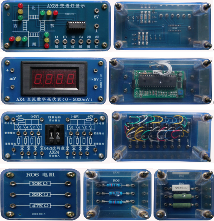 (透明電子元件模塊示例圖,共9塊板,140多只透明有機(jī)塑料封閉元件盒)