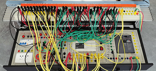 3.開放性:該實驗裝置PLC模塊I/O端子、變頻器的接線端子、各常用模塊與PLC的連接端子、傳感器、按鈕開關(guān)、指示燈元件等端子全部開放,均采用護套插座導(dǎo)線連接,可進(jìn)行電氣線路控制、電氣線路設(shè)計等內(nèi)容實訓(xùn)。