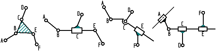 n = 4, P5 = 6的桿組稱為Ⅲ級(jí)桿組,其形式較多,圖3所示的是幾種常見的Ⅲ級(jí)桿組: