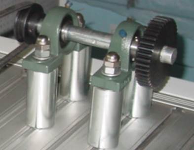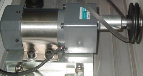 B.       將電機底座開的U行槽對著臺子的T行槽,將底座的前邊和T行槽邊盡量保持平行,用T行螺釘、墊圈和螺母固定電機(螺母不要擰緊,以方便調(diào)整帶的張緊,和傳動系統(tǒng)的平行度)
