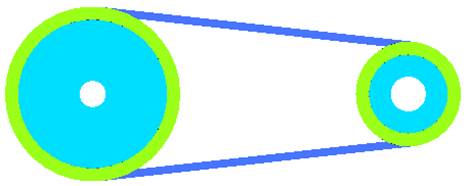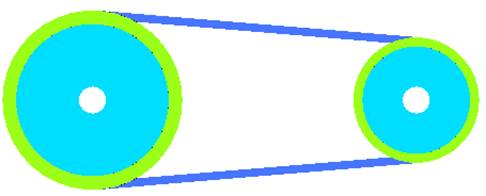 例:計算圖示1-3帶輪的比率,在這種情況下,一個帶輪的直徑是56mm,另一個是80mm。傳動比為:i=56/80=0.7。