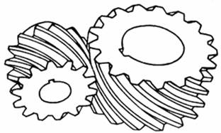 角分別相等,而且螺旋角大小相等,旋向相反,