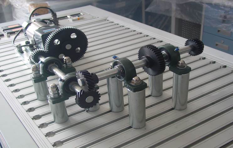 1、選折合適的位置安裝電動(dòng)機(jī),并把主動(dòng)齒輪安裝在電機(jī)軸上。(安裝過程見直齒圓柱齒輪傳動(dòng)實(shí)驗(yàn))。