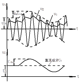 由該式可見,調(diào)制系數(shù)愈大或檢波器交直流電阻之比愈小,則愈容易產(chǎn)生割底失真。