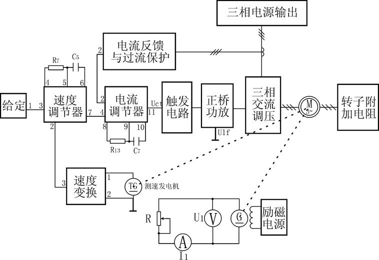 (1) 了解并熟悉雙閉環(huán)三相異步電機(jī)調(diào)壓調(diào)速系統(tǒng)的原理及組成。