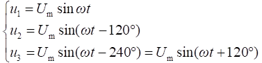 在三相交流電源中,設(shè)三相對稱電壓的參考方向為由始端指向末端,并以為參考正弦量,則有