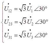 三相交流電源做△聯(lián)結(jié)時,相電壓與線電壓的相量關(guān)系表達(dá)式為