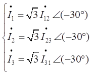 當(dāng)三相對稱負(fù)載做△聯(lián)結(jié)時,線電流也是對稱的,其有效值為相電流有效值的倍,其相位比相應(yīng)的相電流滯后30°,即