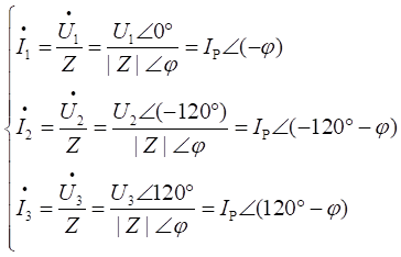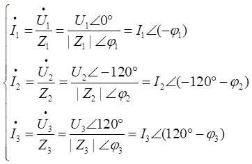 無論三相負(fù)載是否對稱,其相電壓和線電壓都分別等于三相交流電源的相電壓和線電壓,而且其相電流的有效值等于相應(yīng)線電流的有效值,即