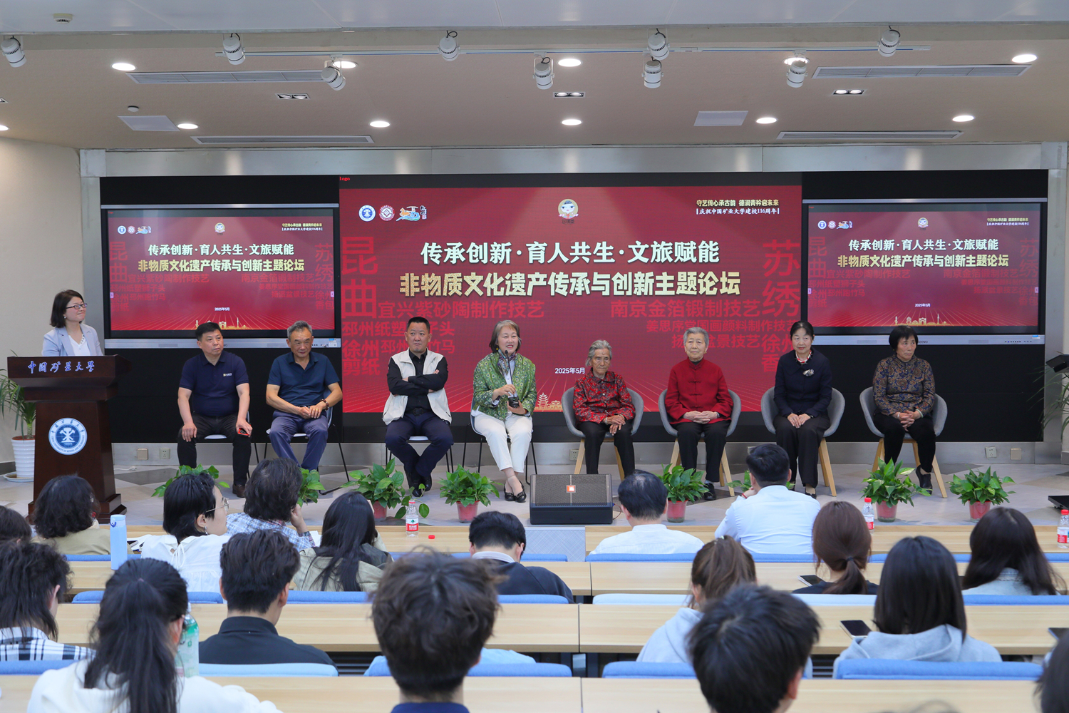5月9日上午,在南湖校區(qū)體育館,非物質(zhì)文化遺產(chǎn)現(xiàn)場(chǎng)展示和體驗(yàn)在徐州嗩吶和邳州跑竹馬的精彩表演中拉開(kāi)帷幕。宜興紫砂陶制作技藝、蘇繡、南京金箔鍛制技藝、蘇州姜思序堂(國(guó)畫(huà)顏料)制作技藝、揚(yáng)派盆景技藝、徐州香包、徐州剪紙和邳州紙塑獅子頭等國(guó)家級(jí)非遺項(xiàng)目悉數(shù)亮相。同學(xué)們?cè)诮嚯x領(lǐng)略非遺之美的同時(shí),還在傳承人手把手的指導(dǎo)下,體驗(yàn)制作過(guò)程。5月9日下午,“非物質(zhì)文化遺產(chǎn)傳承主題論壇”在博學(xué)大講堂舉辦。8位國(guó)家級(jí)非遺傳承人及學(xué)校專(zhuān)家學(xué)者齊聚一堂,圍繞“非遺傳承的當(dāng)代挑戰(zhàn)與創(chuàng)新路徑”等議題展開(kāi)研討。