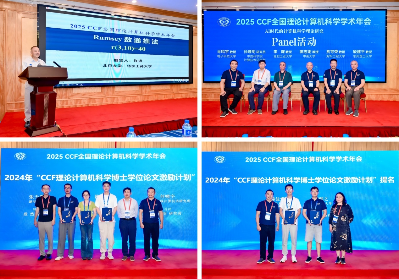 會議設(shè)置了多個特色板塊,推動學(xué)術(shù)與產(chǎn)業(yè)聯(lián)動。在專題報告環(huán)節(jié),北京大學(xué)許進(jìn)教授作題為《R(3,10)=40》的報告。在博士學(xué)位論文激勵計劃報告會中,5位優(yōu)秀博士生分享了最新創(chuàng)新成果。在Panel活動中,肖鳴宇教授、中國科學(xué)院計算技術(shù)研究所孫曉明研究員、合肥工業(yè)大學(xué)李廉教授、東莞理工大學(xué)殷建平教授、中南大學(xué)陳志剛教授、海軍工程大學(xué)賁可榮教授圍繞“AI時代的理論計算機(jī)科學(xué)”展開討論。在CCF-華為胡楊林基金理論計算機(jī)專項報告活動中,7位青年學(xué)者展示了各自研究的最新進(jìn)展和成果。