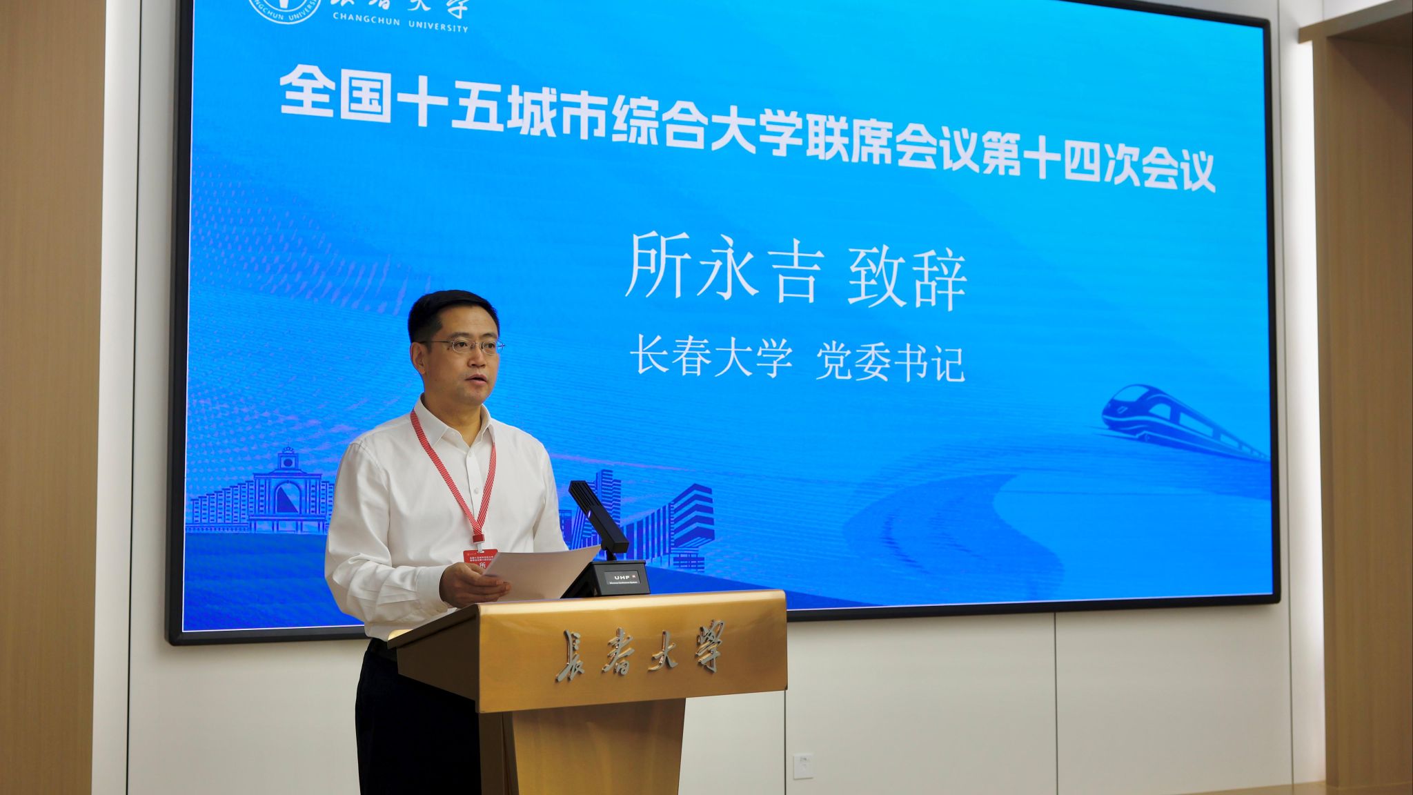 所永吉在致辭中表示,此次會議是貫徹落實(shí)習(xí)近平總書記在全國教育大會上重要講話精神、落實(shí)教育強(qiáng)國建設(shè)規(guī)劃綱要轉(zhuǎn)化為生動實(shí)踐的落實(shí)大會。長春大學(xué)作為一所學(xué)科門類齊全、多專業(yè)協(xié)調(diào)發(fā)展、辦學(xué)特色鮮明的省屬綜合性大學(xué),近年來,學(xué)校堅(jiān)持“面向地方、面向行業(yè)、面向產(chǎn)業(yè)”的學(xué)科專業(yè)建設(shè)定位,致力于讓人才培養(yǎng)和科技創(chuàng)新精準(zhǔn)對接地方經(jīng)濟(jì)主戰(zhàn)場和國家重大工程;堅(jiān)持國際化辦學(xué),努力提升學(xué)校整體實(shí)力和國際聲譽(yù);堅(jiān)持特色辦學(xué)之路,著力推動高等特殊教育事業(yè)高質(zhì)量發(fā)展;堅(jiān)持推進(jìn)產(chǎn)教融合,積極推動科研成果高效轉(zhuǎn)化,在奮力推動吉林高質(zhì)量發(fā)展明顯進(jìn)位中展現(xiàn)長大擔(dān)當(dāng)。希望成員單位能夠打破壁壘、深化協(xié)同,攜手同行、集群發(fā)展,扎根地方、精準(zhǔn)發(fā)力,以此次會議為新的起點(diǎn),同心同德,務(wù)實(shí)篤行,將發(fā)展共識轉(zhuǎn)化為推動15所城市綜合大學(xué)共進(jìn)共贏、服務(wù)教育強(qiáng)國建設(shè)的磅礴力量。