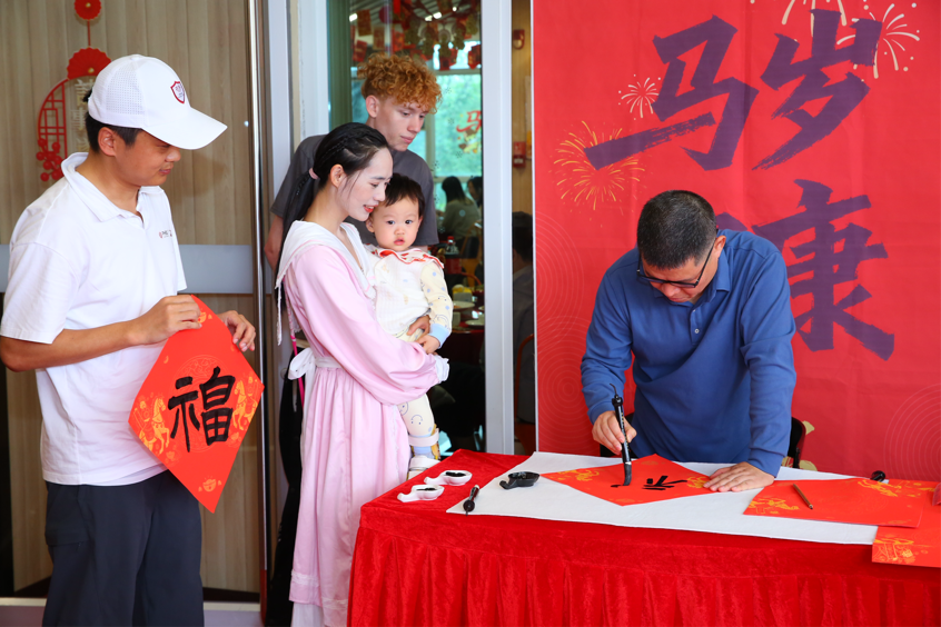 步入會場,滿目皆是喜慶的中國紅。高懸的燈籠映照著張張笑臉,手寫的春聯(lián)傳遞著美好祝福,倒貼的福字訴說著“福到”的期盼。在寫福字區(qū)域,學(xué)生們或提筆凝神或揮毫潑墨,將對新年的憧憬傾注筆端。留學(xué)生也躍躍欲試,在紅紙上留下雖顯稚嫩卻誠意滿滿的“福”字,中外學(xué)子在傳統(tǒng)文化中共同感受中國年的獨(dú)特魅力。深研院還為每位留校學(xué)生準(zhǔn)備了滿載關(guān)懷的新年大禮包,讓大家在異鄉(xiāng)也能感受到家的溫暖。