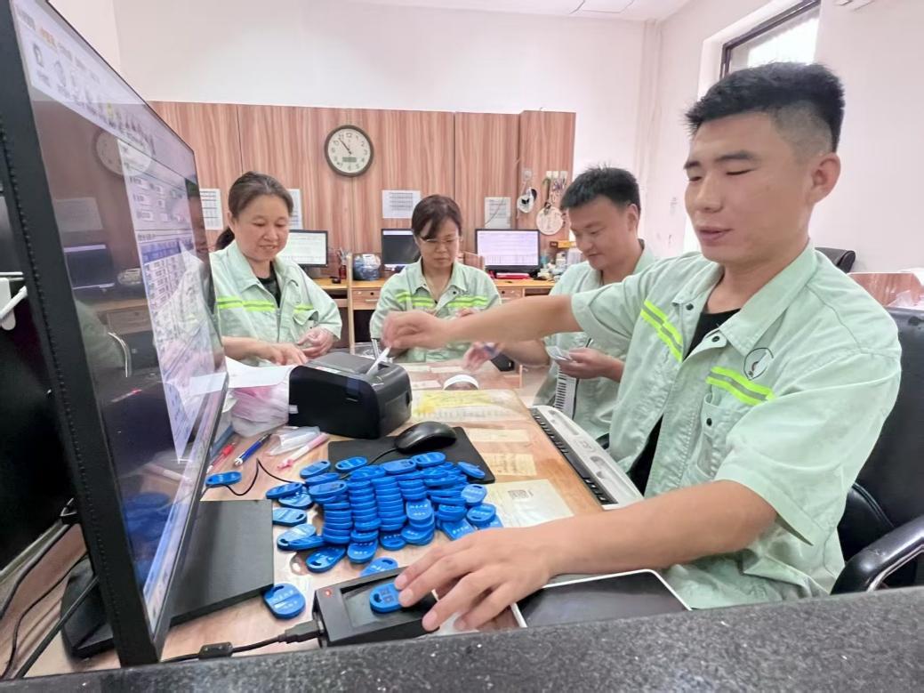 工作人員分發(fā)新生浴卡