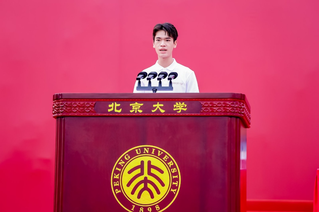 新生代表、工學(xué)院2025級(jí)本科生王派回顧了中學(xué)階段參與“智能助老”項(xiàng)目而對(duì)科學(xué)技術(shù)產(chǎn)生濃厚興趣的故事。他表示,將追求“既能打磨器之精微,也能成就道之廣大的人生”,不辜負(fù)時(shí)代與青春,為民族復(fù)興偉業(yè)匯入北大人的力量。