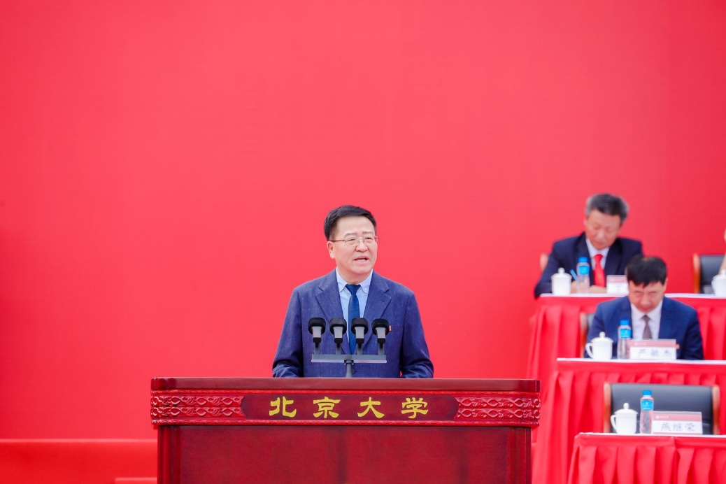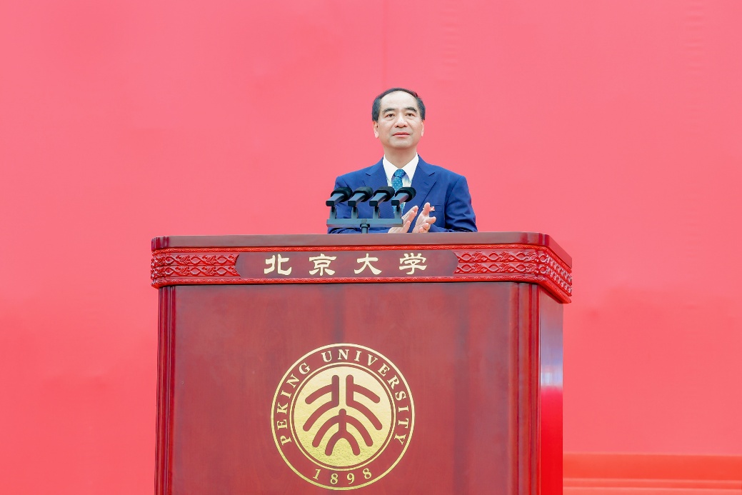 龔旗煌代表學(xué)校對(duì)各位新同學(xué)的到來表示熱烈歡迎。他指出,兩天前,紀(jì)念中國(guó)人民抗日戰(zhàn)爭(zhēng)暨世界反法西斯戰(zhàn)爭(zhēng)勝利80周年大會(huì)在北京隆重舉行,北大師生倍感振奮與自豪。從“救亡圖存”的艱辛探索,到“團(tuán)結(jié)起來,振興中華”的時(shí)代強(qiáng)音,再到“請(qǐng)黨放心,強(qiáng)國(guó)有我”的使命擔(dān)當(dāng),走過127個(gè)春秋的北大始終與祖國(guó)和人民同奮斗、共前進(jìn),引領(lǐng)一代代青年學(xué)子在歷史潮流中堅(jiān)定人生航向。
