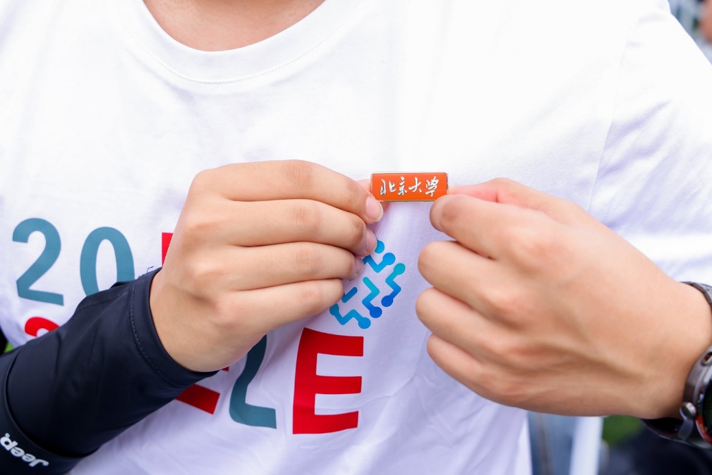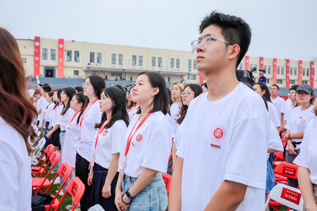 新生全體起立,集體佩戴;。從這一刻起,同學(xué)們便與這所百年學(xué)府血脈相融。