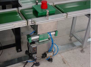 本輸送系統(tǒng)由皮帶輸送機和轉(zhuǎn)角輸送機組成O型輸送系統(tǒng),框架采用鋁合金框架,其結(jié)構(gòu)簡單、重量輕,安裝、使用、維護方便。每條皮帶運輸機由鋁合金支架、皮帶、輥筒、電機與減速器組成,并且輸送機上裝有位置傳感器。轉(zhuǎn)角輸送部分由直流電機+減速器驅(qū)動,所有輸送機速度可調(diào),系統(tǒng)中要有一條變頻調(diào)速輸送線。