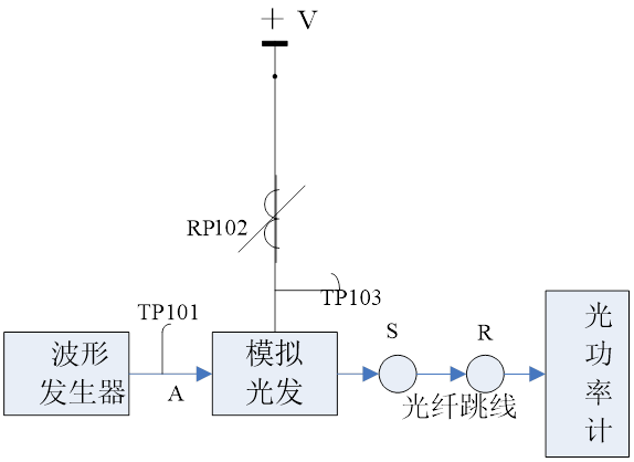 - 調(diào)試模擬光發(fā)送機,調(diào)電阻RP401,使得TP101的信號幅度達到最大又不失真,然后通過測試點TP103觀測晶體管的輸出波形(若失真調(diào)RP101)。