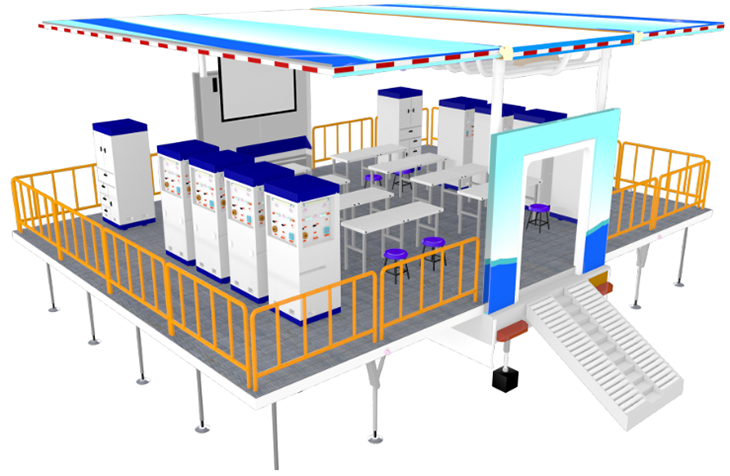 車(chē)體展開(kāi)后實(shí)訓(xùn)平臺(tái)的面積可以達(dá)到70平方米,可以滿足預(yù)定專(zhuān)業(yè)20多人的培訓(xùn)需求。